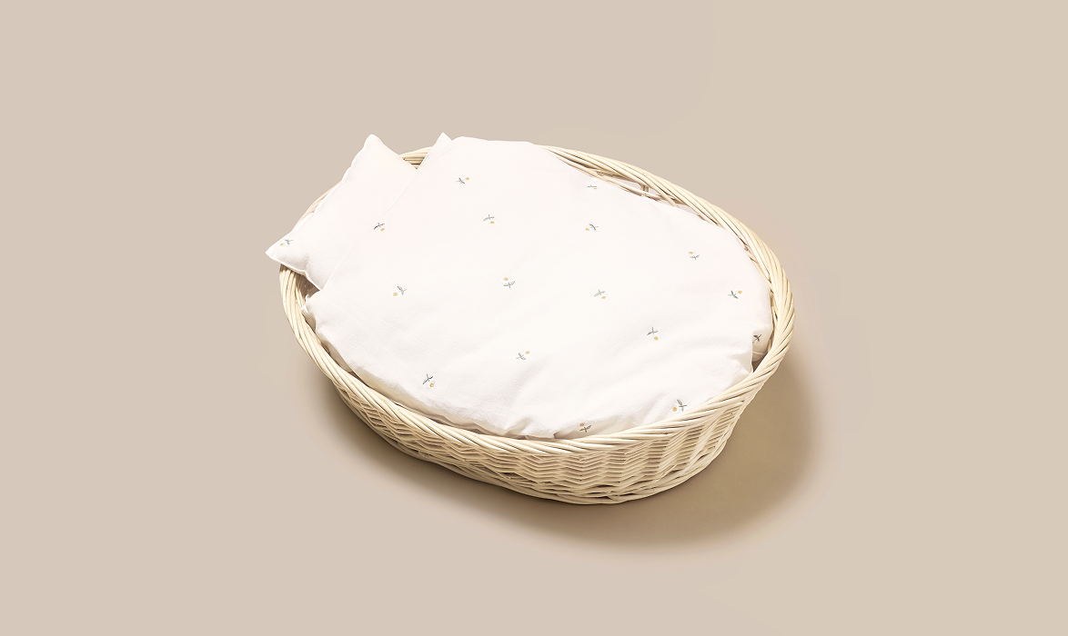 아이를 정갈하게 감싸는 순백의 이불